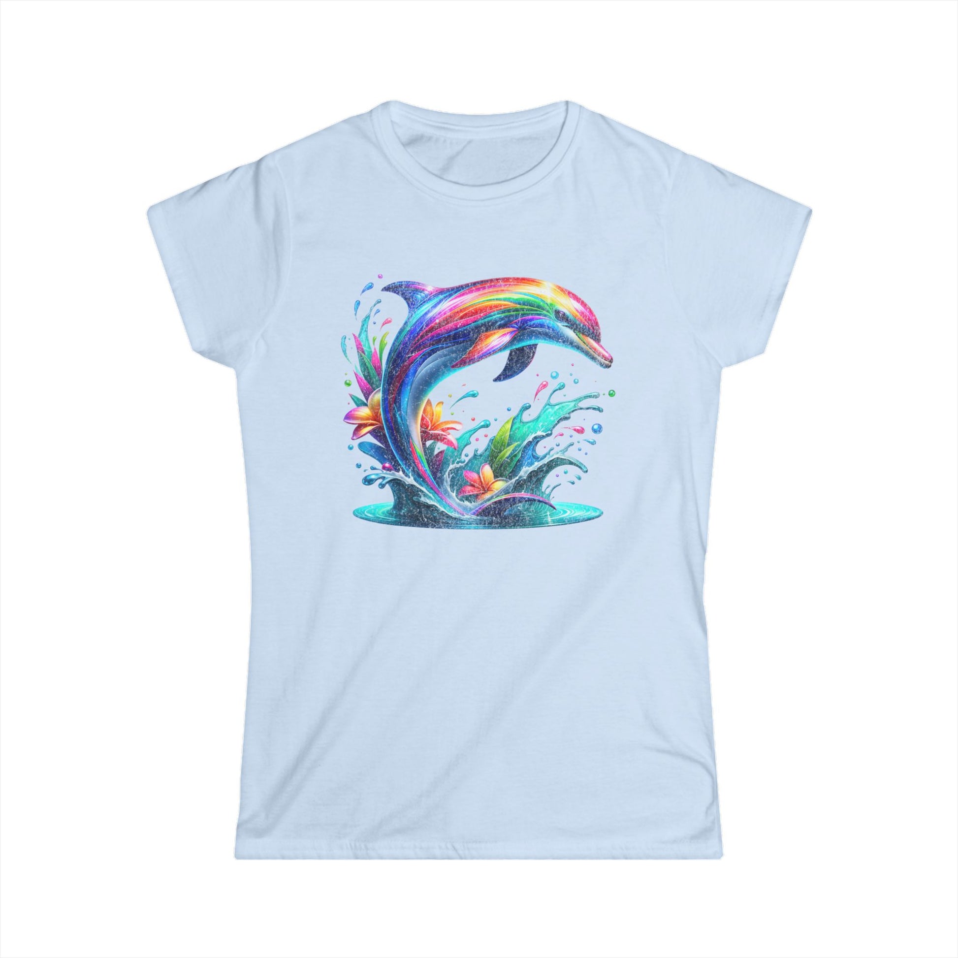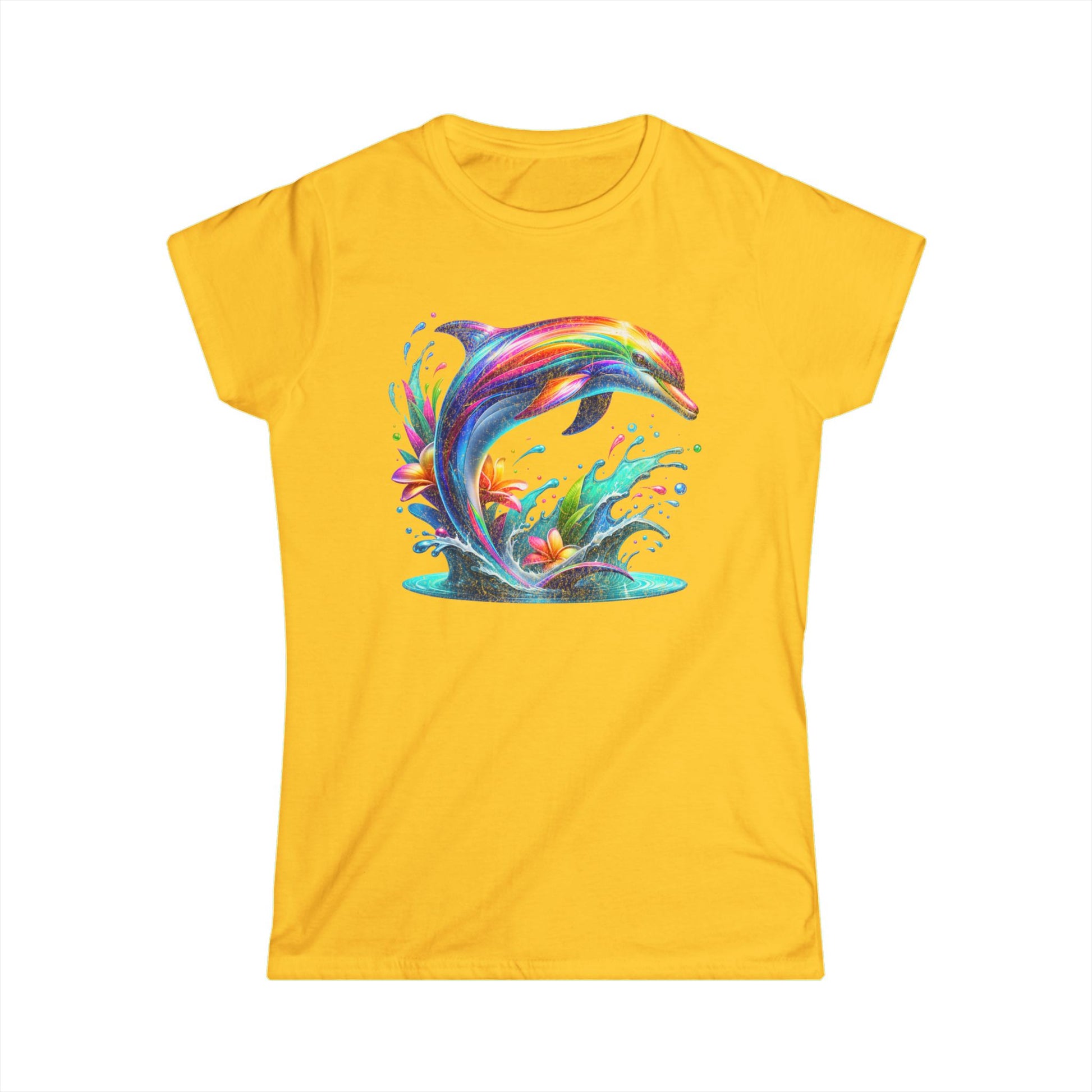 Colorful Dolphin Women's Softstyle Tee, Beachwear, Gift for Sea Lovers, Summer Vibes, Ocean-Themed Fashion