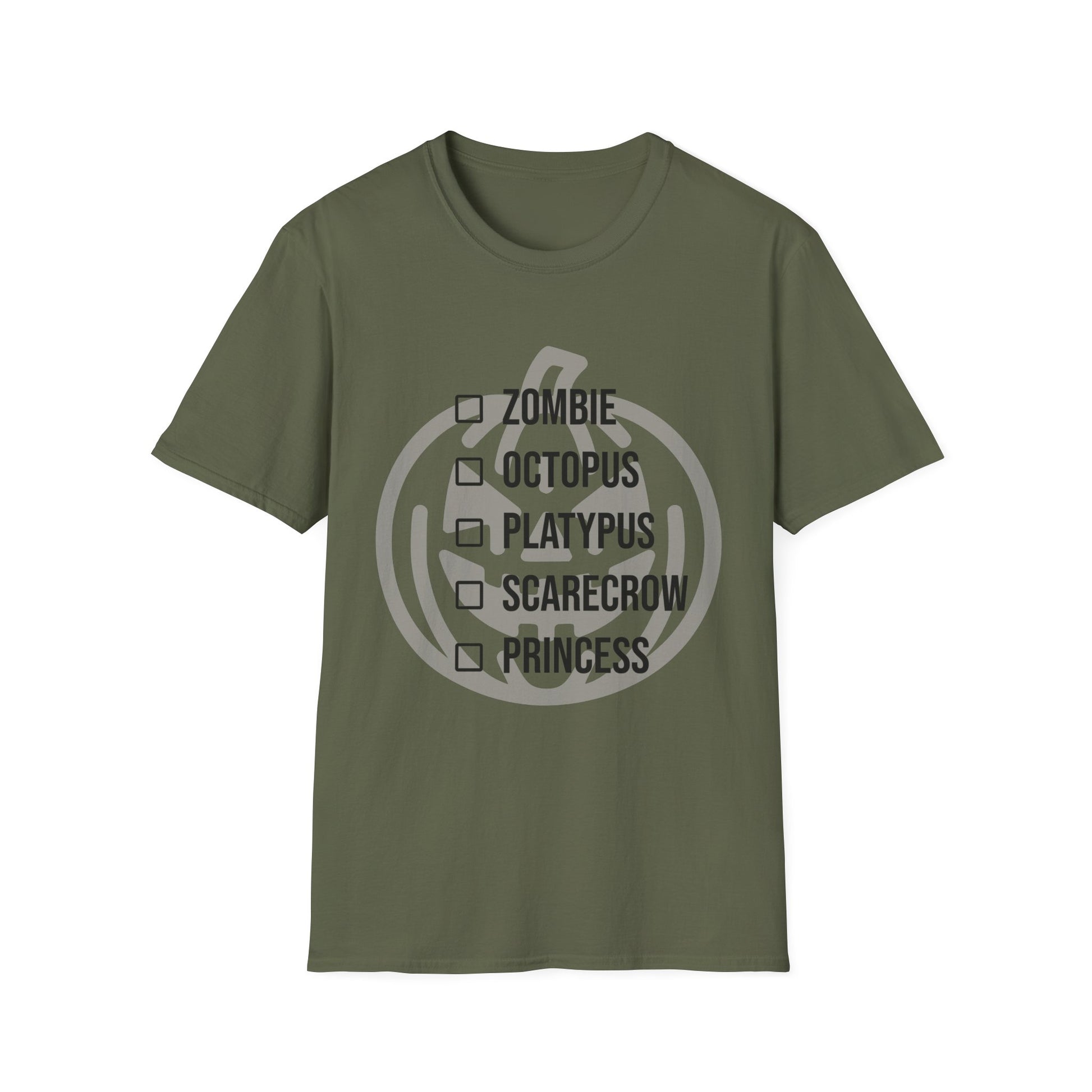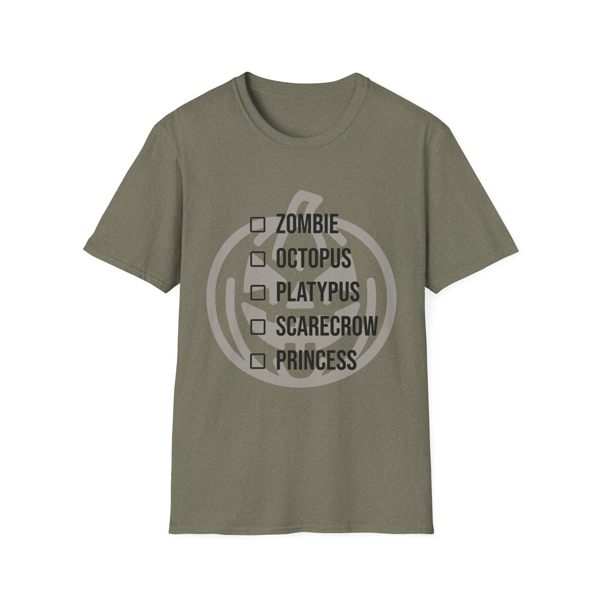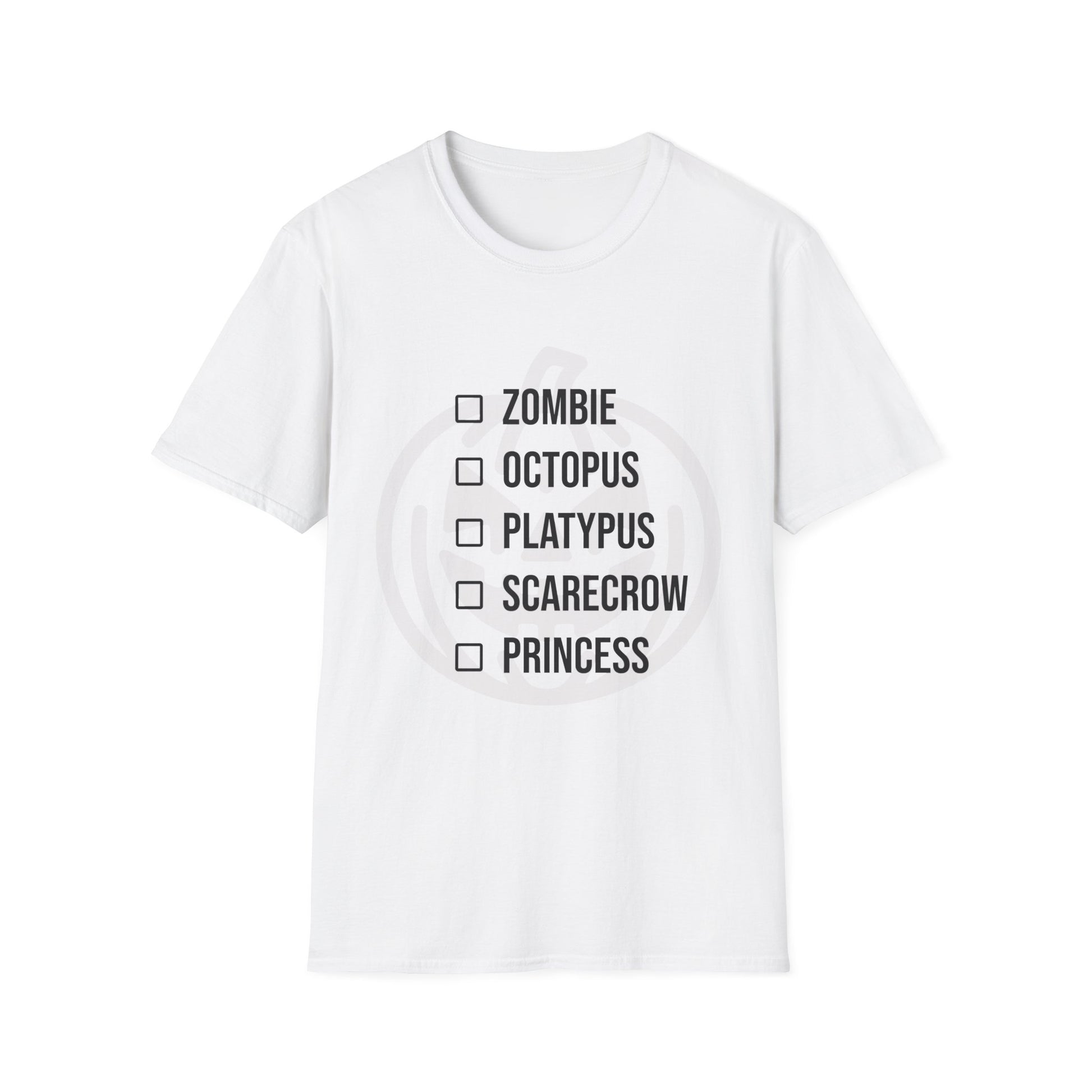 Halloween Checklist Unisex Softstyle T-Shirt, Funny Graphic Tee, Costume Planning Shirt, Halloween Party Apparel, Gift for Fall Celebrations