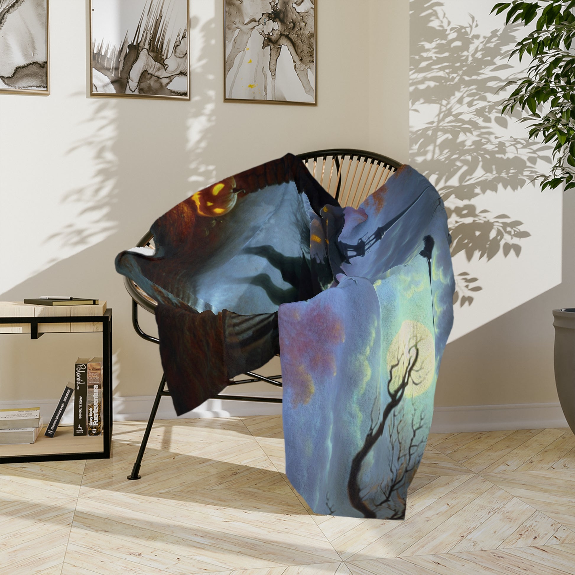 Halloween Headless Horseman Velveteen Microfiber Blanket, Cozy Throw Blanket, Fall Decor, Spooky Home Accents, Autumn Gift