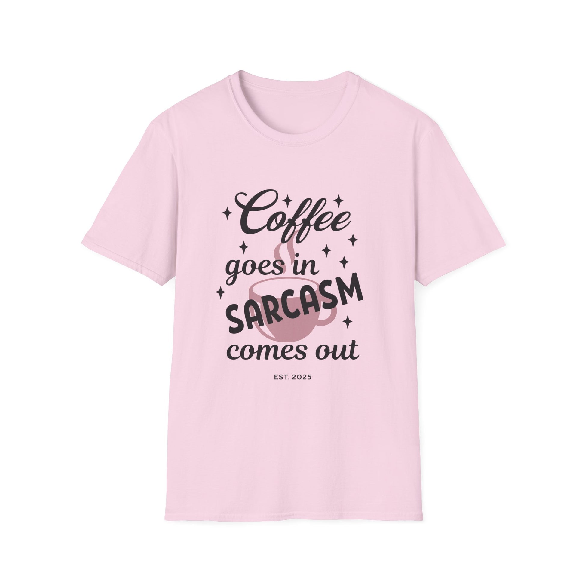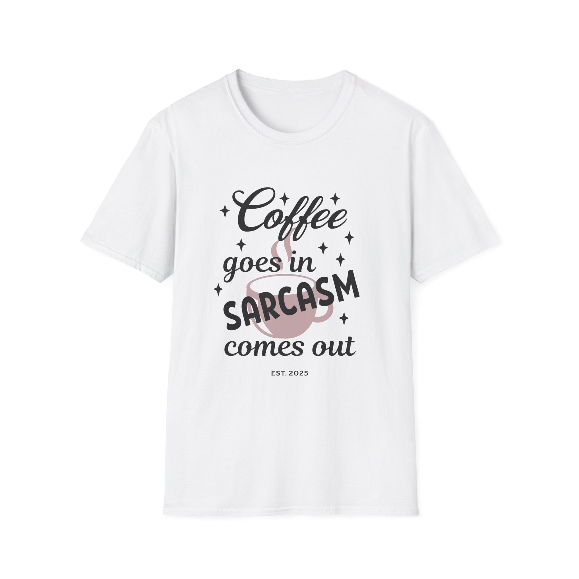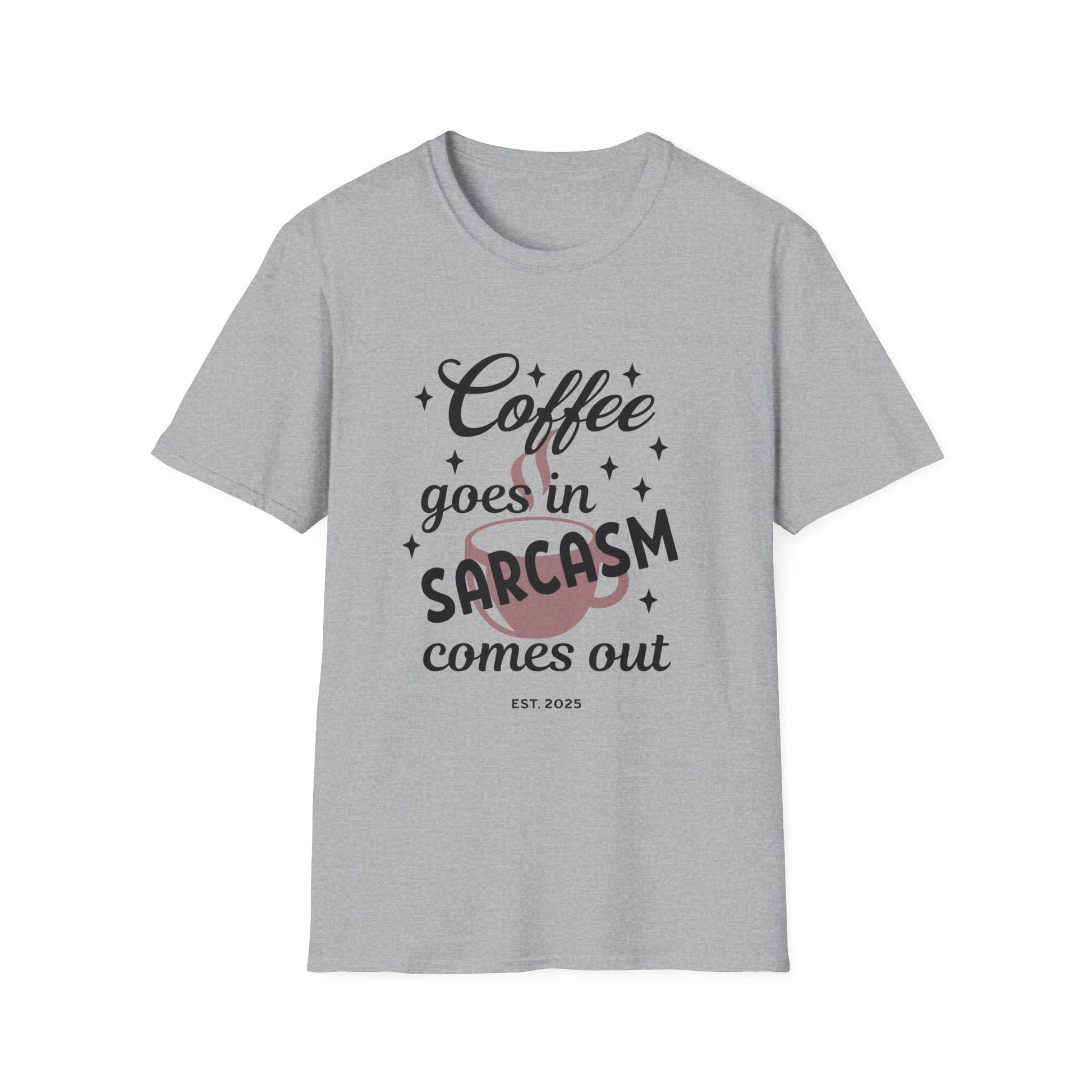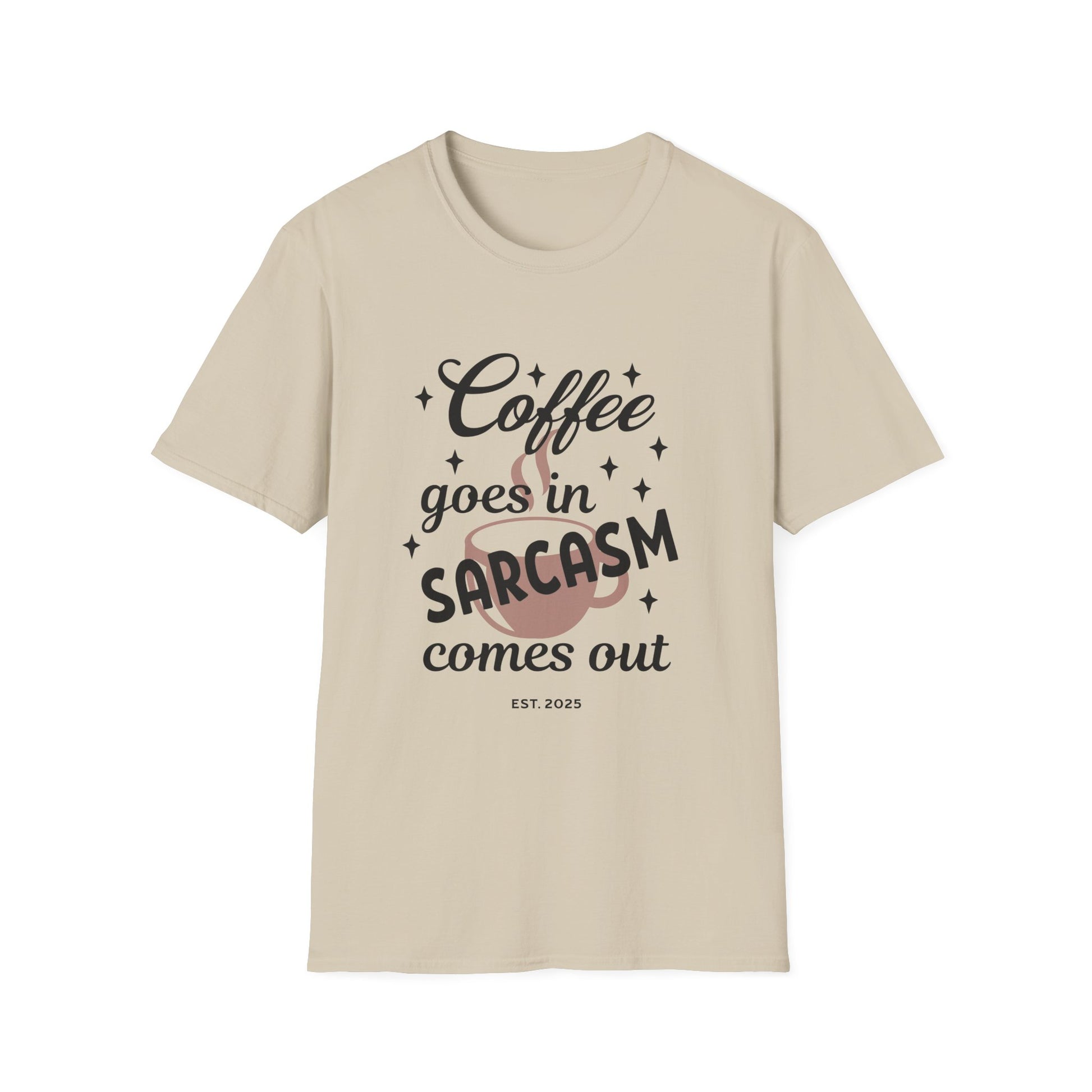 Sarcasm and Coffee Unisex T-Shirt, Casual Tee for Coffee Lovers, Fun Gift for Friends, Humorous Shirt for Relaxed Days