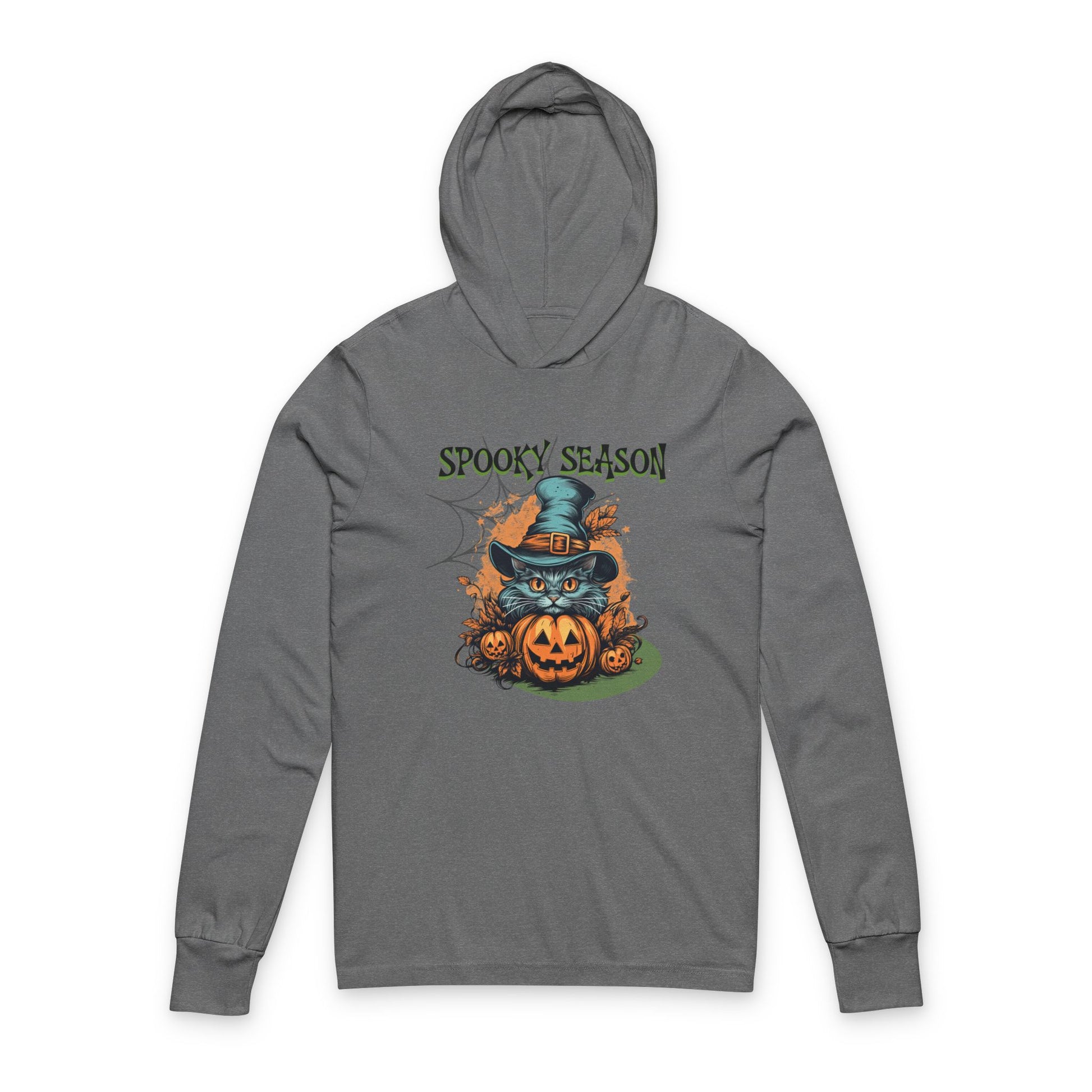 Spooky Season Cat Unisex Hooded Long Sleeve Tee, Halloween Hoodie, Fall Apparel, Cozy Gift, Unique Halloween Shirt